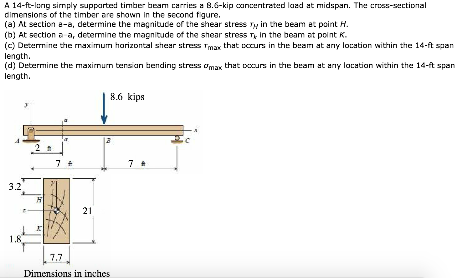 Solved A 14 Ft Long Simply Supported Timber Beam Carries A Chegg Com